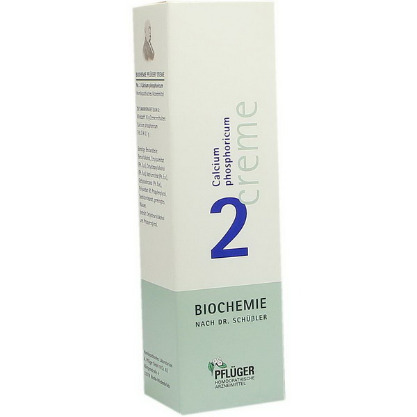 Biochemie Pflüger® Creme Nr. 2 Calcium phosphoricum ist ein registriertes homöopathisches Arzneimittel, daher ohne Angabe einer therapeutischen Indikation. Bei Fortdauern der Krankheitssymptome während der Anwendung soll medizinischer Rat eingeholt werden.