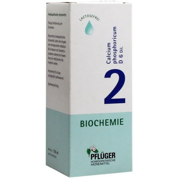 Biochemie Pflüger® Nr. 2 Calcium phosphoricum D 6 Dil. ist ein registriertes homöopathisches Arzneimittel, daher ohne Angabe einer therapeutischen Indikation. Bei Fortdauern der Krankheitssymptome während der Anwendung soll medizinischer Rat eingeholt werden.