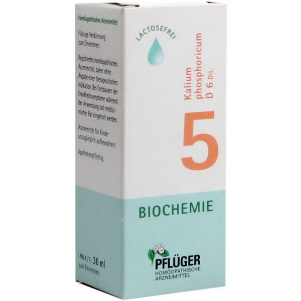 Biochemie Pflüger® Nr. 5 Kalium phosphoricum D 6 Dil. ist ein registriertes homöopathisches Arzneimittel, daher ohne Angabe einer therapeutischen Indikation. Bei Fortdauern der Krankheitssymptome während der Anwendung soll medizinischer Rat eingeholt werden.
