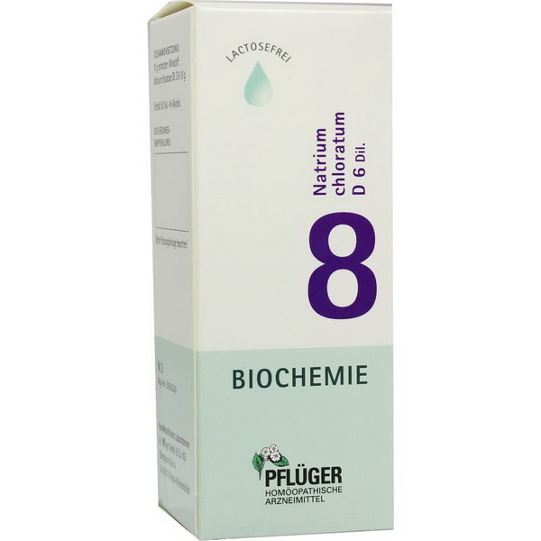 Biochemie Pflüger® Nr. 8 Natrium chloratum D 6 Dil. ist ein registriertes homöopathisches Arzneimittel, daher ohne Angabe einer therapeutischen Indikation. Bei Fortdauern der Krankheitssymptome während der Anwendung soll medizinischer Rat eingeholt werden.