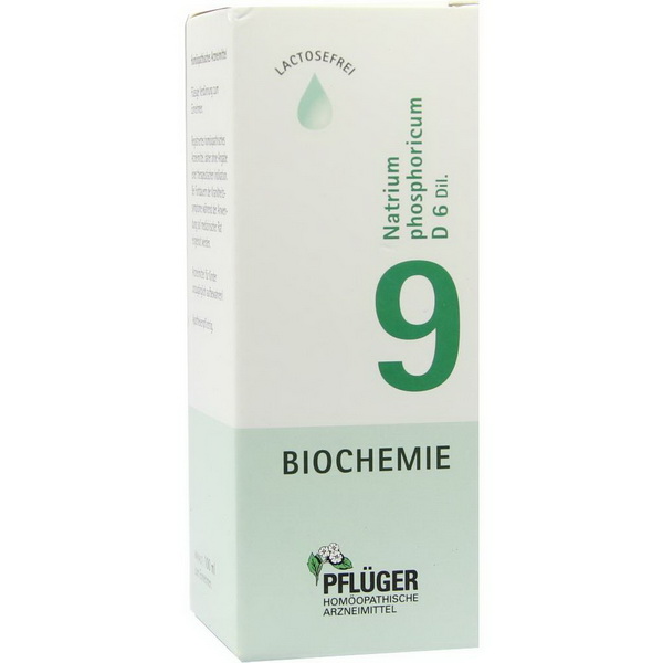 Biochemie Pflüger® Nr. 9 Natrium phosphoricum D 6 Dil. ist ein registriertes homöopathisches Arzneimittel, daher ohne Angabe einer therapeutischen Indikation. Bei Fortdauern der Krankheitssymptome während der Anwendung soll medizinischer Rat eingeholt werden.