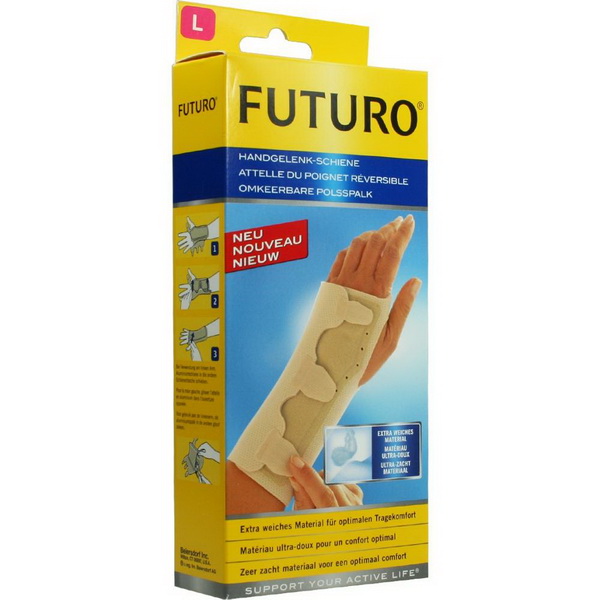 Die FUTURO™ Classic Handgelenk-Schiene in Größe L dient der festen Stabilisierung des Handgelenks und hilft bei der Linderung von akuten Reizungen (z. B. Karpaltunnelsyndrom), Überlastung und degenerativen Schmerzen. Die Schiene kann auch nach Ruhigstellung (z. B. nach Tragen eines Gipses) verwendet werden. Die Schiene trägt sich sehr angenehm dank ihres extra weichen, hautfreundlichen und atmungsaktiven Materials. Dabei sitzt sie optimal und stabilisiert je nach individueller Einstellung das Handgelenk. Vier Verschlüsse garantieren einen perfekten Sitz. Eine individuell einstellbare Ruheposition ist durch ihre formbare Aluminiumschiene möglich. Die FUTURO™ Classic Handgelenk- Schiene ist sowohl links- als auch rechtsseitig tragbar. Sie wurde in Zusammenarbeit mit Fachärzten und Physiotherapeuten entwickelt.