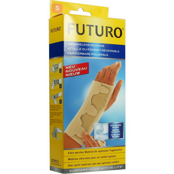 Die FUTURO™ Classic Handgelenk-Schiene in Größe S dient der festen Stabilisierung des Handgelenks und hilft bei der Linderung von akuten Reizungen (z. B. Karpaltunnelsyndrom), Überlastung und degenerativen Schmerzen. Die Schiene kann auch nach Ruhigstellung (z. B. nach Tragen eines Gipses) verwendet werden. Die Schiene trägt sich sehr angenehm dank ihres extra weichen, hautfreundlichen und atmungsaktiven Materials. Dabei sitzt sie optimal und stabilisiert je nach individueller Einstellung das Handgelenk. Vier Verschlüsse garantieren einen perfekten Sitz. Eine individuell einstellbare Ruheposition ist durch ihre formbare Aluminiumschiene möglich. Die FUTURO™ Classic Handgelenk- Schiene ist sowohl links- als auch rechtsseitig tragbar. Sie wurde in Zusammenarbeit mit Fachärzten und Physiotherapeuten entwickelt.