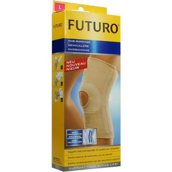 Eine unangenehme Faltenbildung in der Kniekehle wird durch ihr spezielles Gestrick reduziert. Für eine Stabilisierung der Kniescheibe sorgen die Patellaöffnung sowie doppelte Stabilisierungsstäbe, die einen zusätzlichen Stützeffekt erzielen. Die FUTURO™ Classic Knie-Bandage ist sowohl links- als auch rechtsseitig unauffällig unter der Kleidung tragbar. Sie wurde in Zusammenarbeit mit Fachärzten und Physiotherapeuten entwickelt.