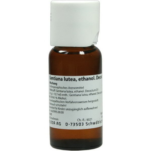 10 g (= 10,7 ml) enthalten: Wirkstoff: Gentiana lutea, ethanol. Decoctum Dil. D1 5 g.