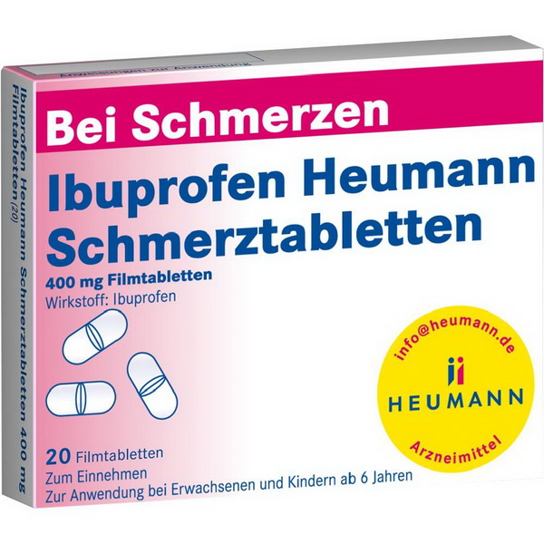 Ibuprofen Heumann Schmerztabletten 400 mg ist ein entzündungshemmendes und schmerzstillendes Arzneimittel (nicht-steroidales Antiphlogistikum/Antirheumatikum).
