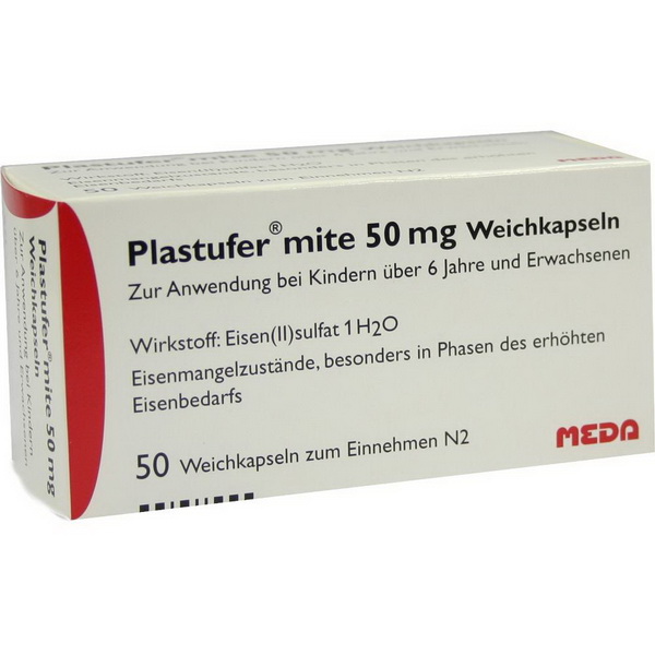 Plastufer mite 50mg wird angewendet bei Kindern ab 6 Jahren und Erwachsenen bei Eisenmangelzuständen, vor allem Eisenmangelanämien, bedingt durch