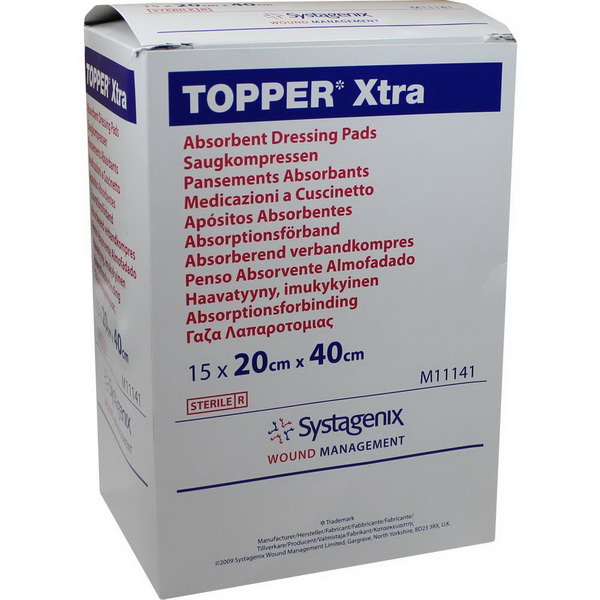 Topper® Xtra absorptionsstarke Kompressen sind vielseitig verwendbare leistungsstarke Saugkompressen zum Einsatz bei mäßig bis stark exsudierenden Wunden.